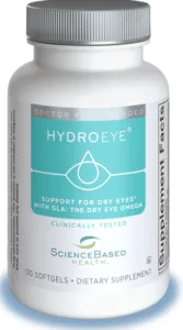 HydroEye is a patented nutritional formulation that works from the inside out to provide continuous support for dry eyes. HydroEye, the focus of clinical research, delivers a proprietary blend of omega fatty acids (GLA, EPA and DHA), antioxidants and other key nutrients that work together to support a healthy tear film and soothe the ocular surface.